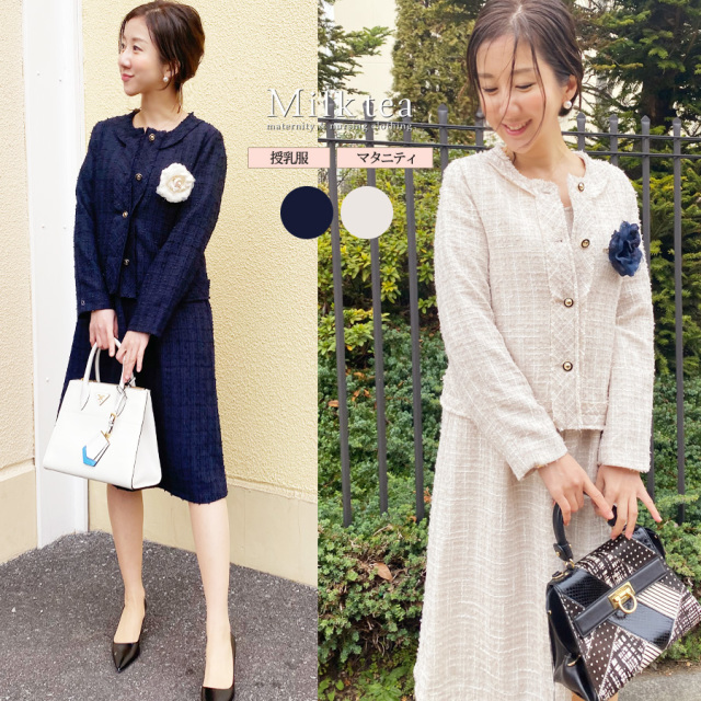楽天市場 クーポン配布中 授乳 マタニティ フローレンス エレガントツイードスーツ 2点セット ジャケット ワンピース ジッパータイプ 授乳服 ママ スーツ テーラード フォーマル セレモニー スーツ お宮参り 入園 卒園 入学 卒業 授乳服とマタニティ服のmilk Tea
